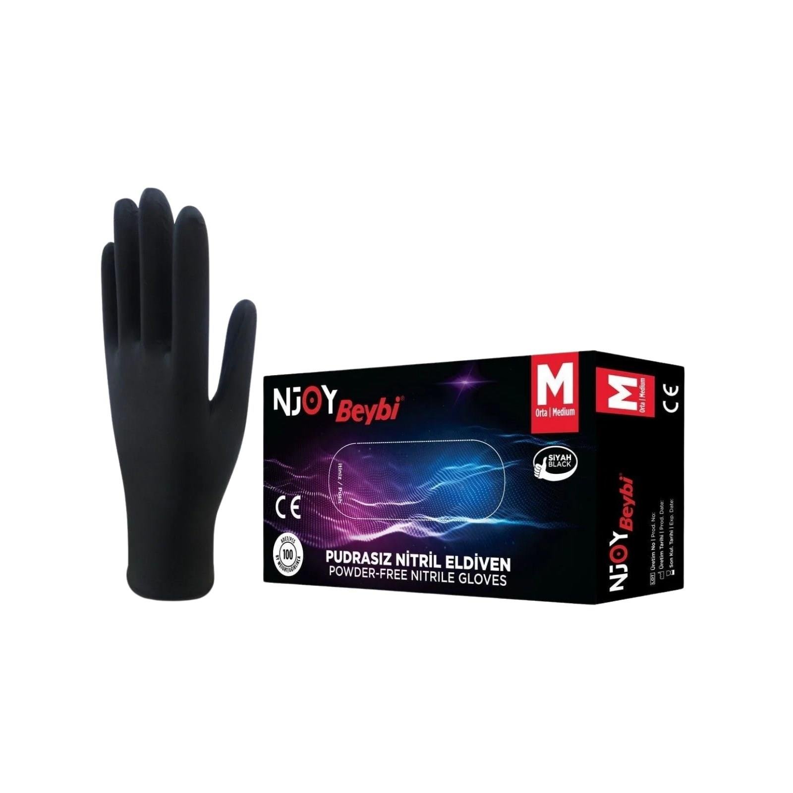 BEYBİ Muayene Medium Pudrasız Njoy Nitril Siyah 100 lü Eldiven